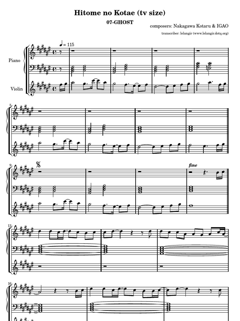 Get Hitomi No Kotae Violin Sheet Music Images. Upload your own music files. } free hitomi no kotae piano sheet music is provided for you.