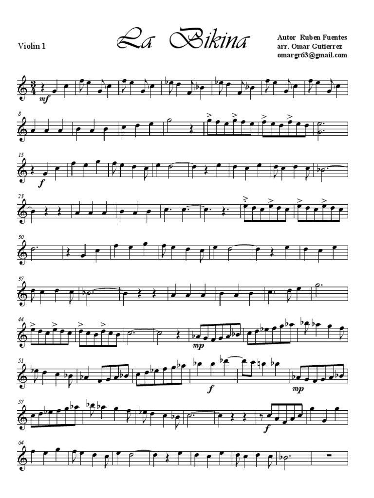 Beginning violin sheet music for violin. Mariachi camarillo performing la bikina Enjoy an unrivalled sheet music experience for ipad—sheet music viewer, score library and music store all in one app. Vocalise, and bach's air on the g string.